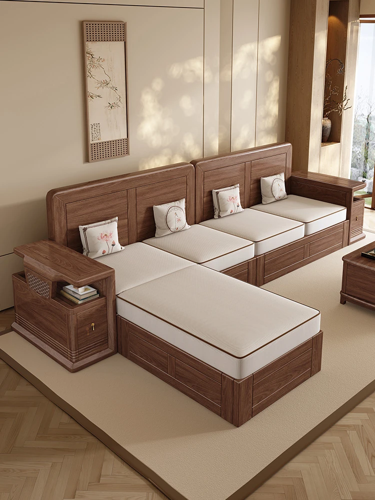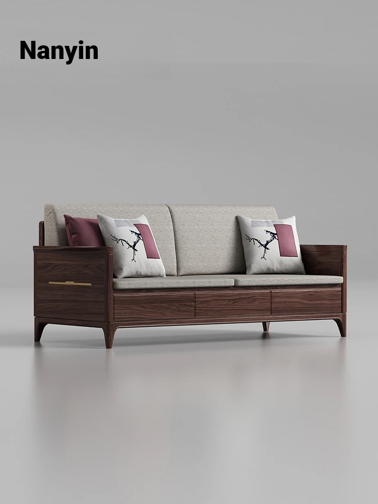 Modern Solid Black Walnut Sofa - 2025 New Arrival, Minimalist Design Living Room Furniture with Storage Solution for Home