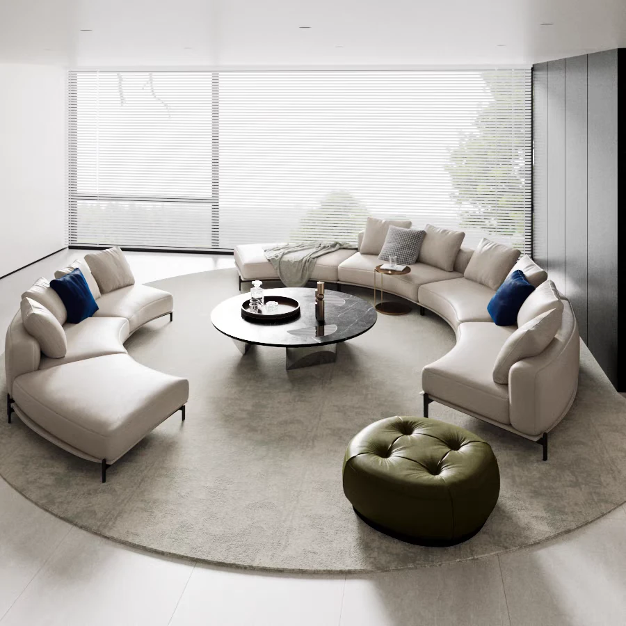 Curved Leather Sofa for Reception Areas - Half-Moon Shaped Seating for Showrooms, Offices, and Hotels - Elegant Design for Comfortable Client Meetings and Relaxation