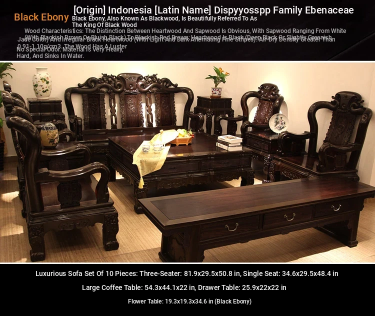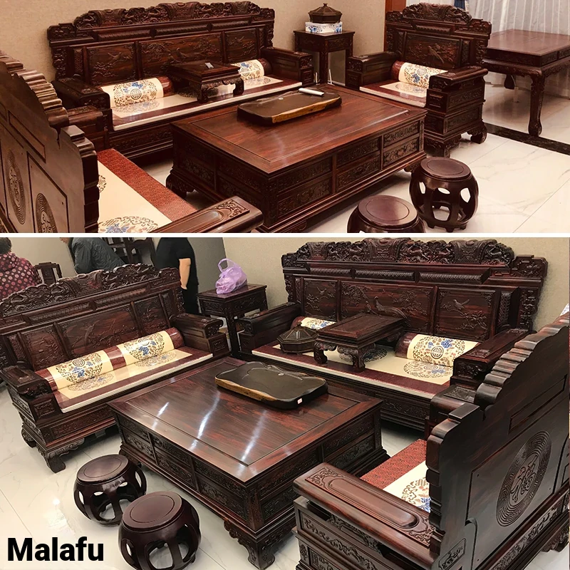 Indonesian Black Rosewood Sofa Set - National Standard Teakwood Living Room Combination, Chinese Style African Rosewood Furniture Manufacturer