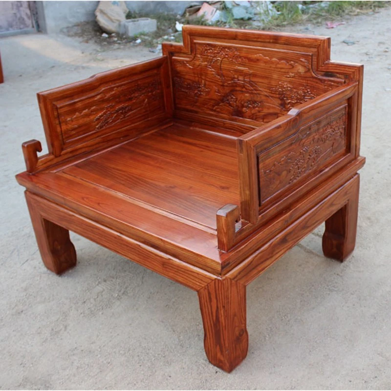 Yiren Pavilion New Chinese Style Old Elm Wood Sofa - Ming and Qing Dynasty Antique Inspired Solid Wood Living Room Light Luxury Sofa and Coffee Table Set