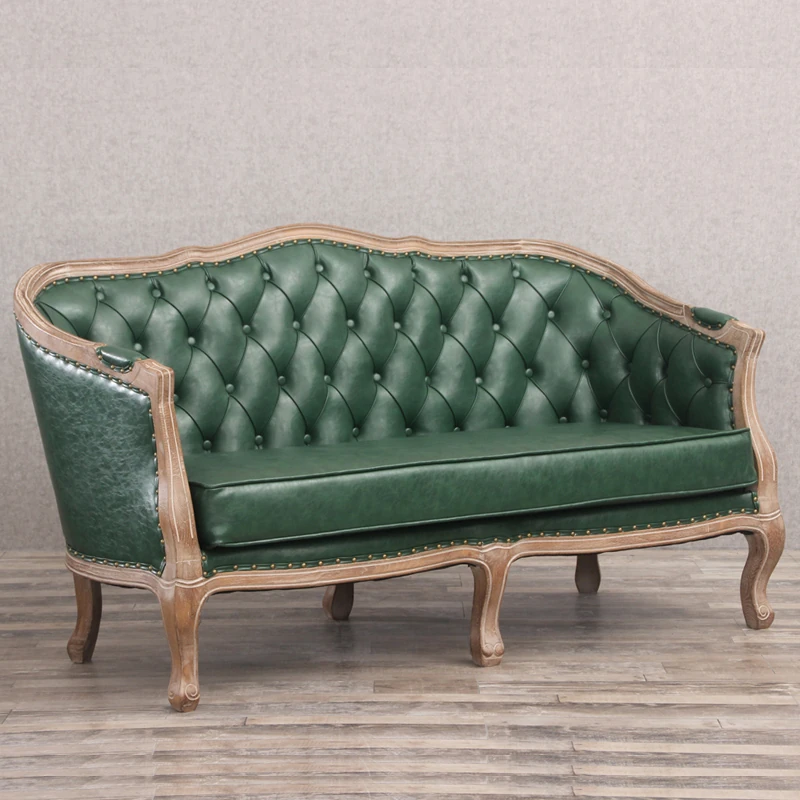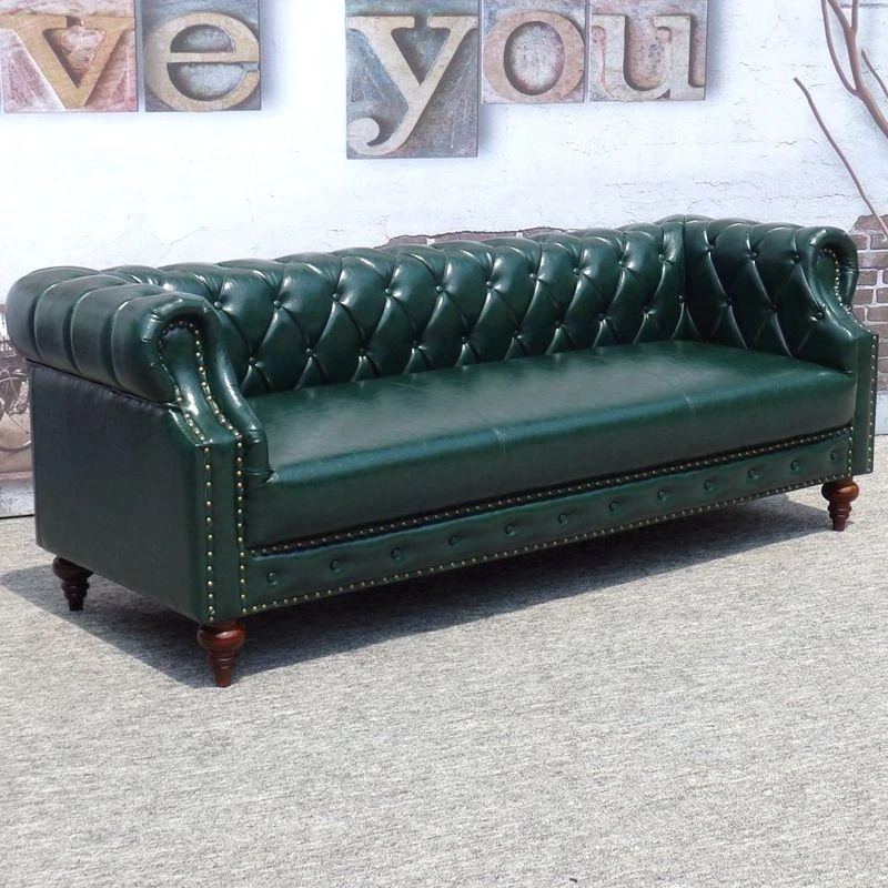 Vintage European Style Three-Seater Leather Sofa - Perfect for Small Spaces, Ideal for Hotels, Living Rooms, Bars, Cafés, Beauty Salons, and Reception Areas.