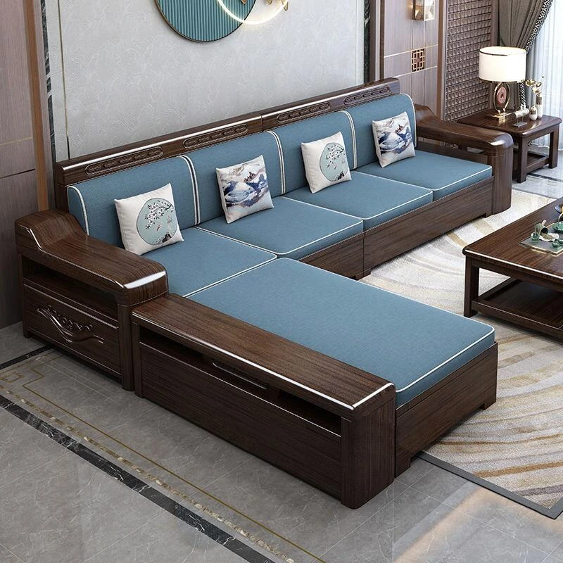 Modern Chinese Style Solid Wood Sofa & Luohan Bed with Chaise Lounge - Minimalist Luxury Ming and Qing Dynasty Inspired Antique Living Room Furniture Set