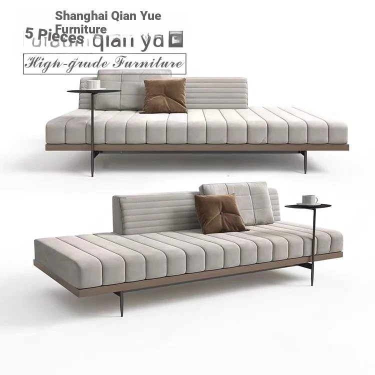 Modern Minimalist Creative Fabric Chaise Lounge – Stylish Daybed for Living Room & Balcony, Solid Wood Design Perfect for Hotels & Guesthouses