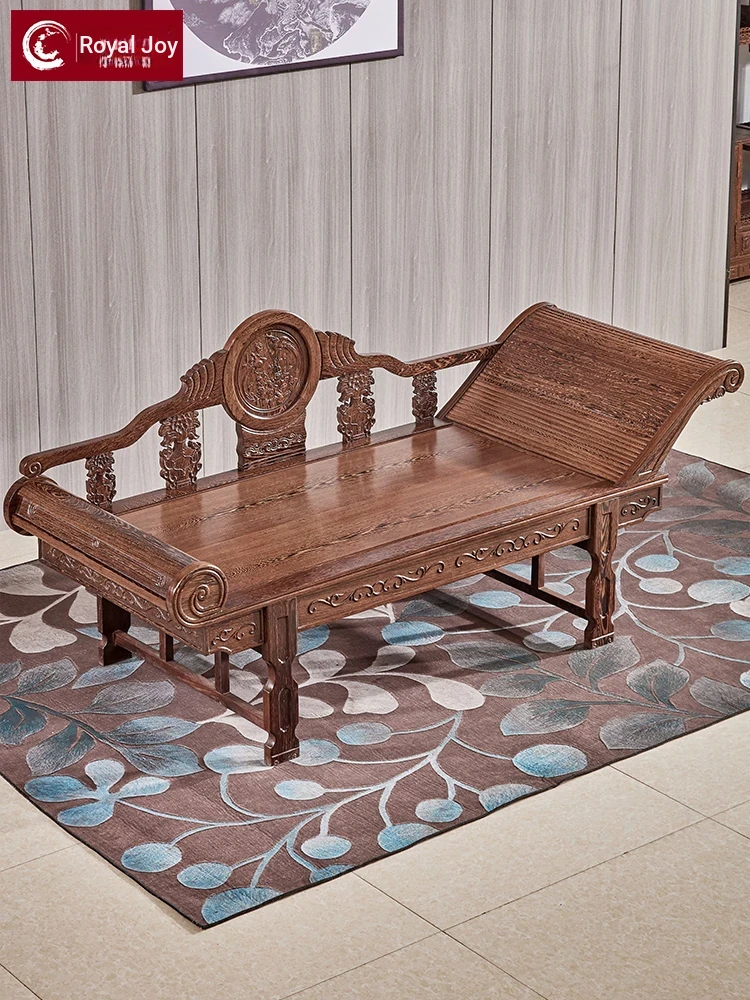 Mahogany Wingback Daybed - Elegant Chinese Style Solid Wood Chaise Lounge for Bedroom, Perfect for Napping and Relaxation, Luxurious Beauty Couch and Sofa