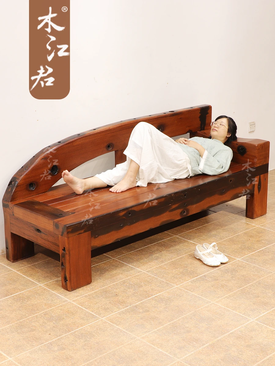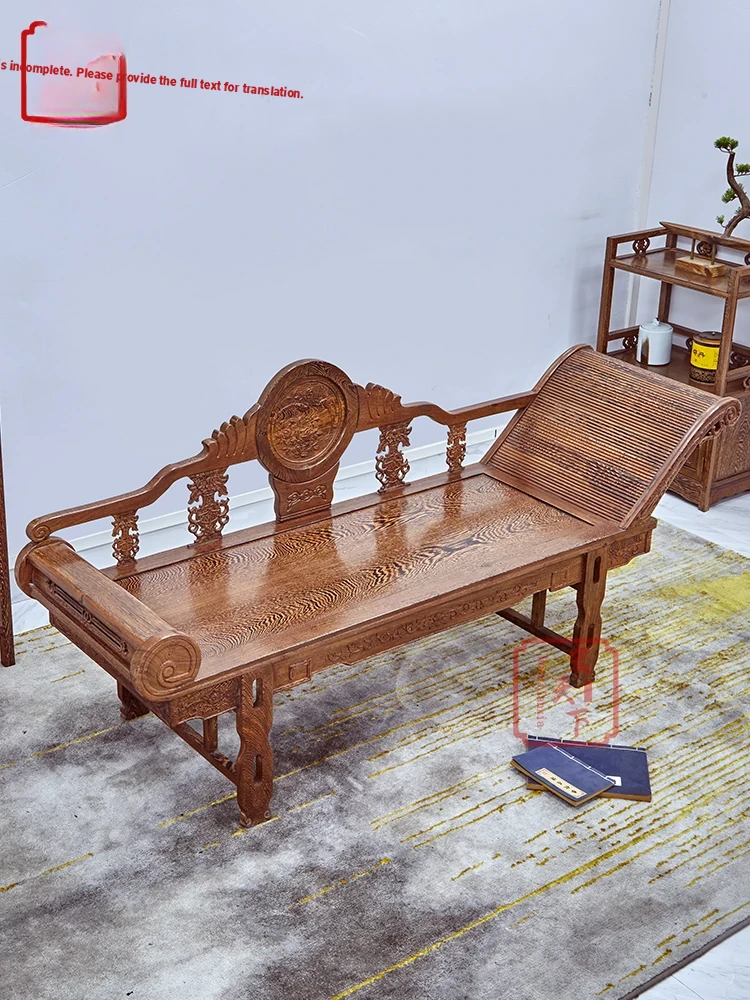 Mujiangjun Antique Shipwood Chaise Lounge - Elegant Solid Wood Recliner Sofa Chair for Relaxation in Chinese Style Living Room