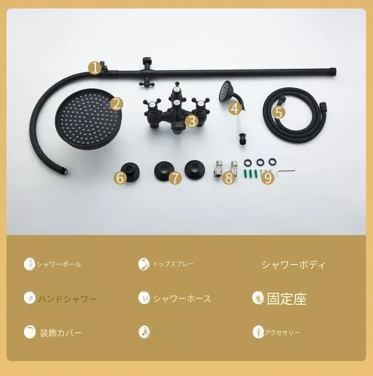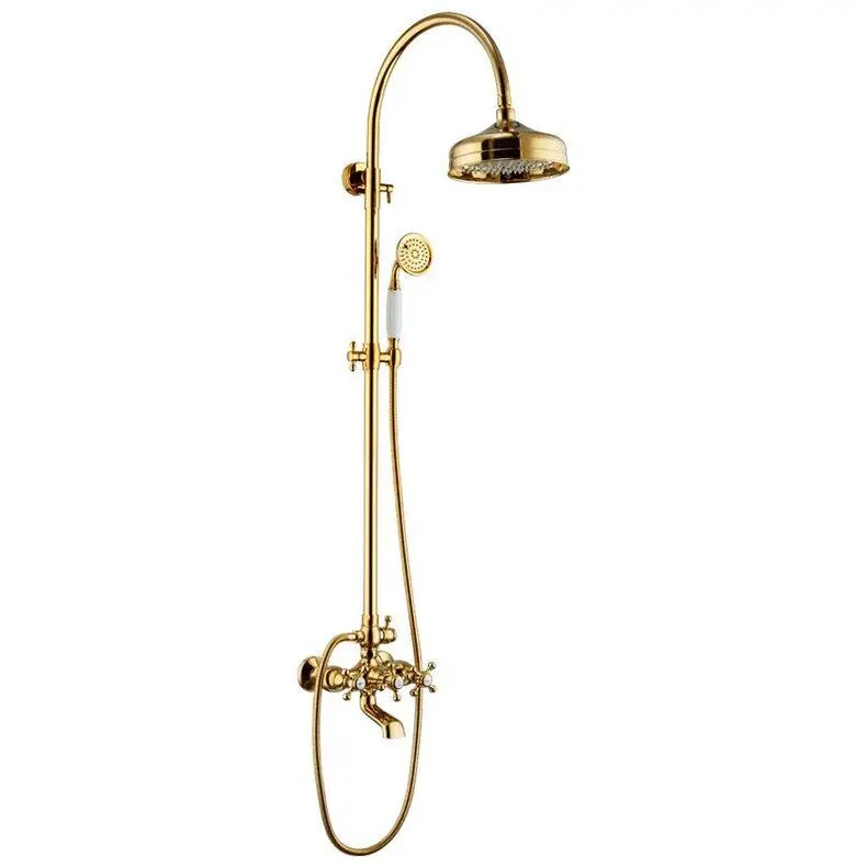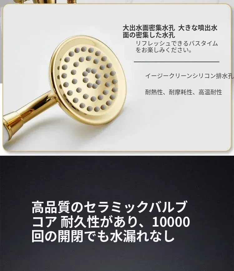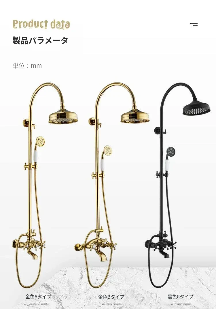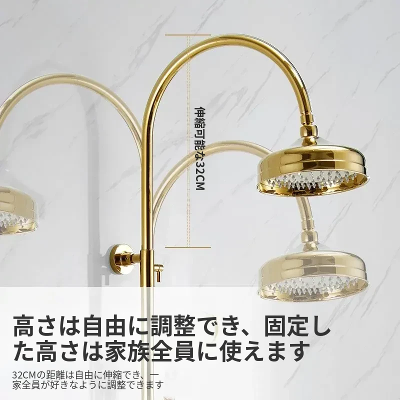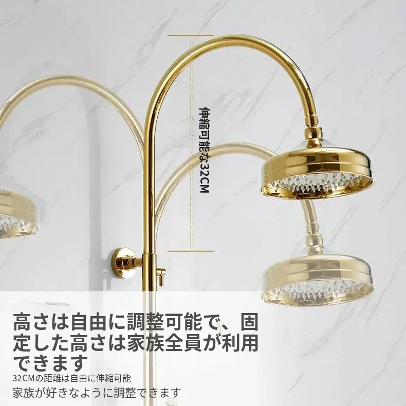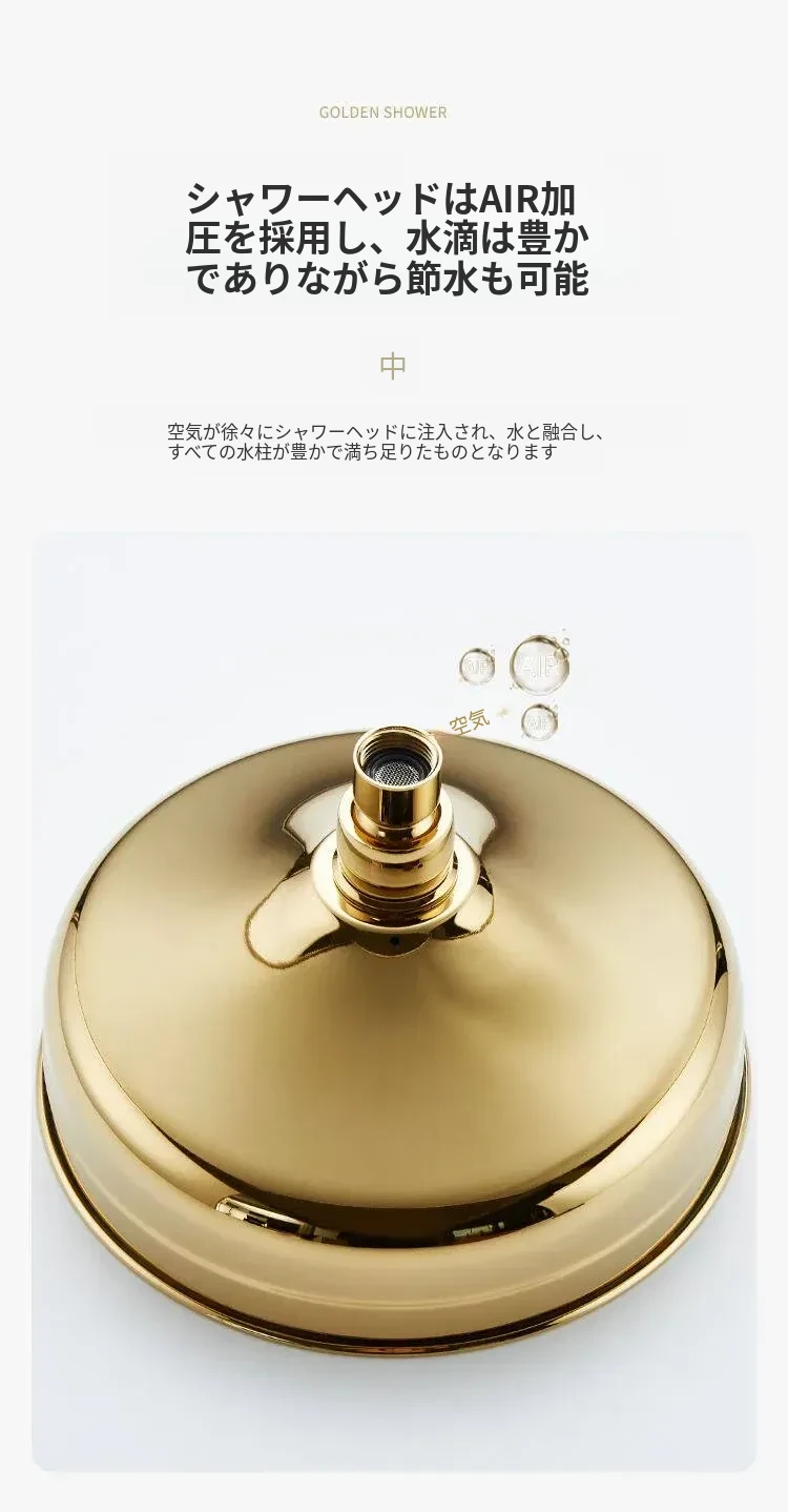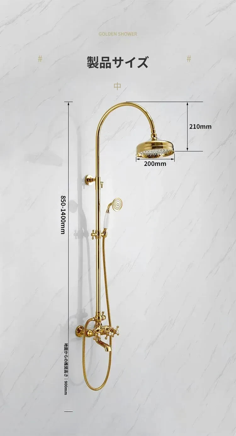 ヨーロッパ風ゴールドシャワーセット|全銅製・増圧機能付き・レトロなデザイン|おしゃれなバスルームを演出します!