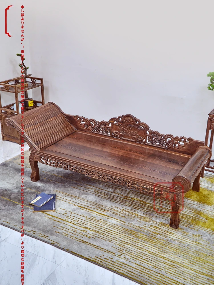 新中式スタイルの無垢材製貴妃椅子 - ウッキン材使用、書斎や別荘、リビングにぴったりなラグジュアリーなソファベッド、美しいデザインで優雅なリラックスタイムをお楽しみください。