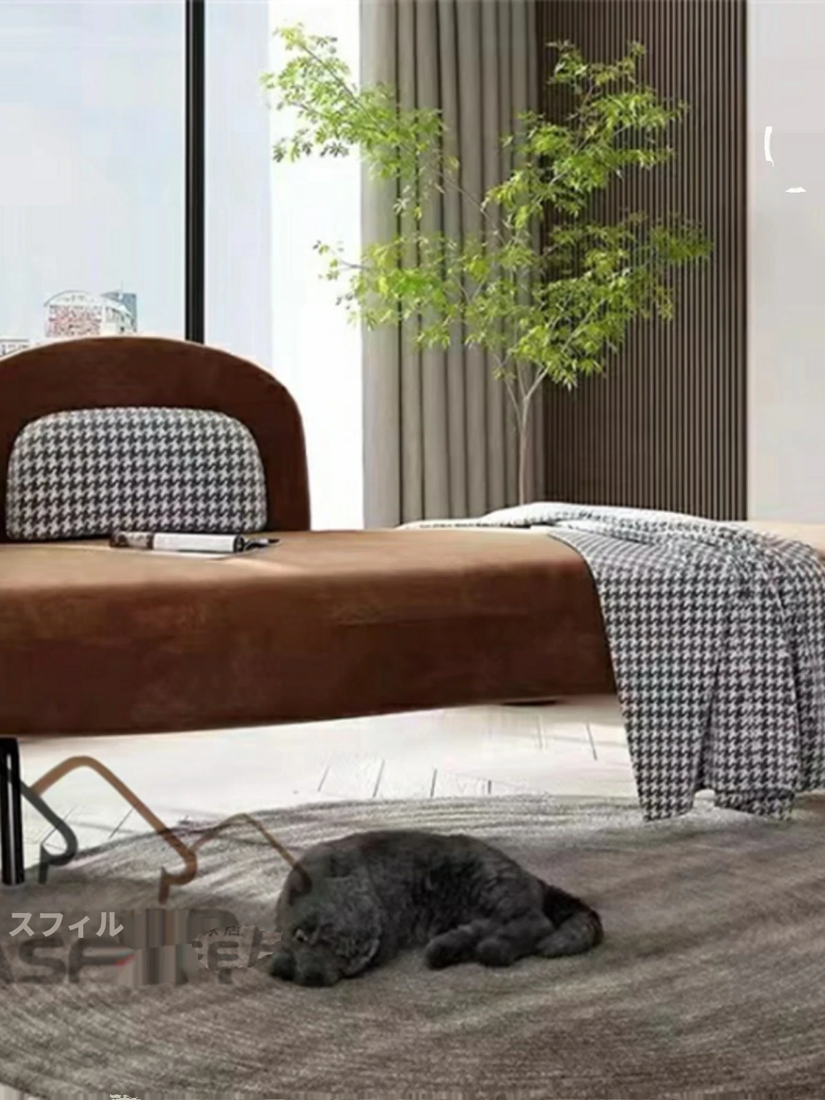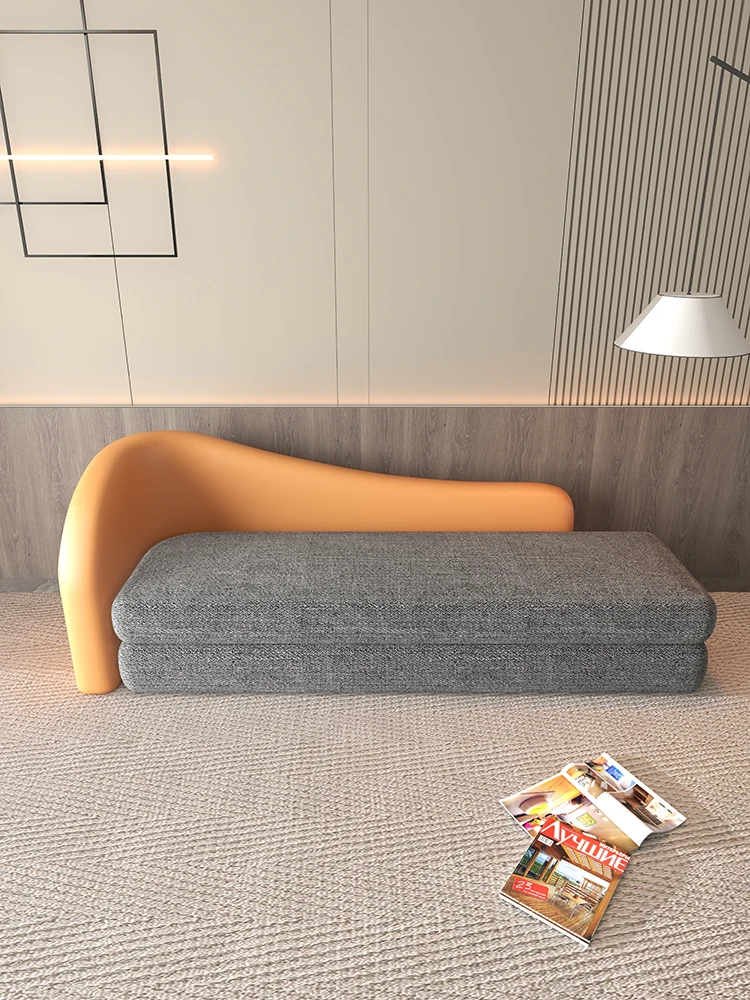 北欧スタイルのシンプルでラグジュアリーな貴妃椅子 - 小さなスペースに最適なテクノロジー布製のデザイン、リラックスできる寝室用ベンチとしても活躍!