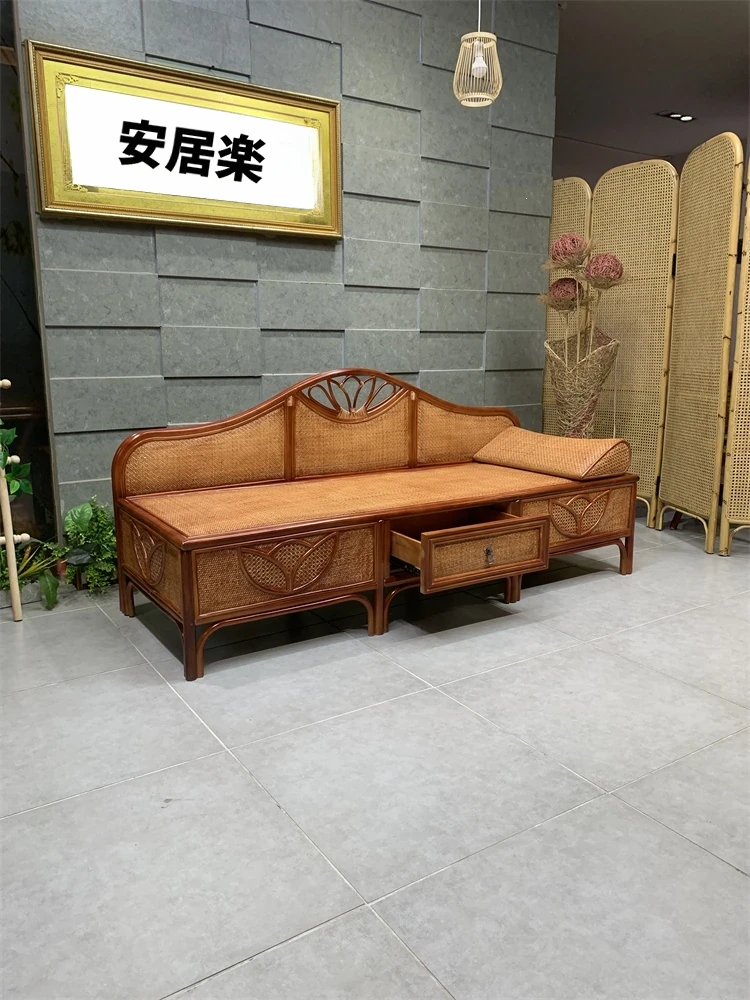 天然ラタン製の高級貴妃椅子 - リラックスできる実木製のデザイン、書斎やリビングに最適なラタン編みの3人掛けソファ。心地よい座り心地で、あなたの空間を優雅に演出します!