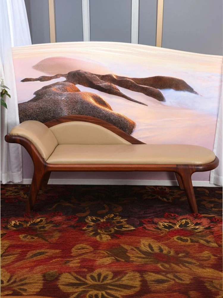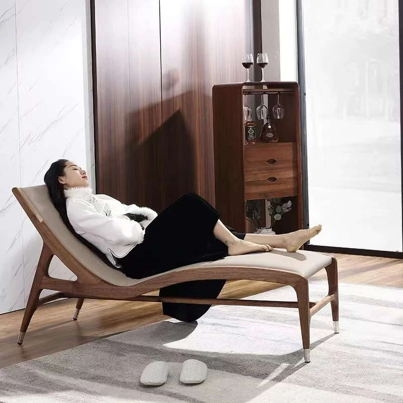 イタリアンミニマリズムの貴妃ソファチェア|無垢材使用の新中式北欧デザイン|リラックスできる本革製|寝室にぴったりの美しいデザインのリクライニングチェア