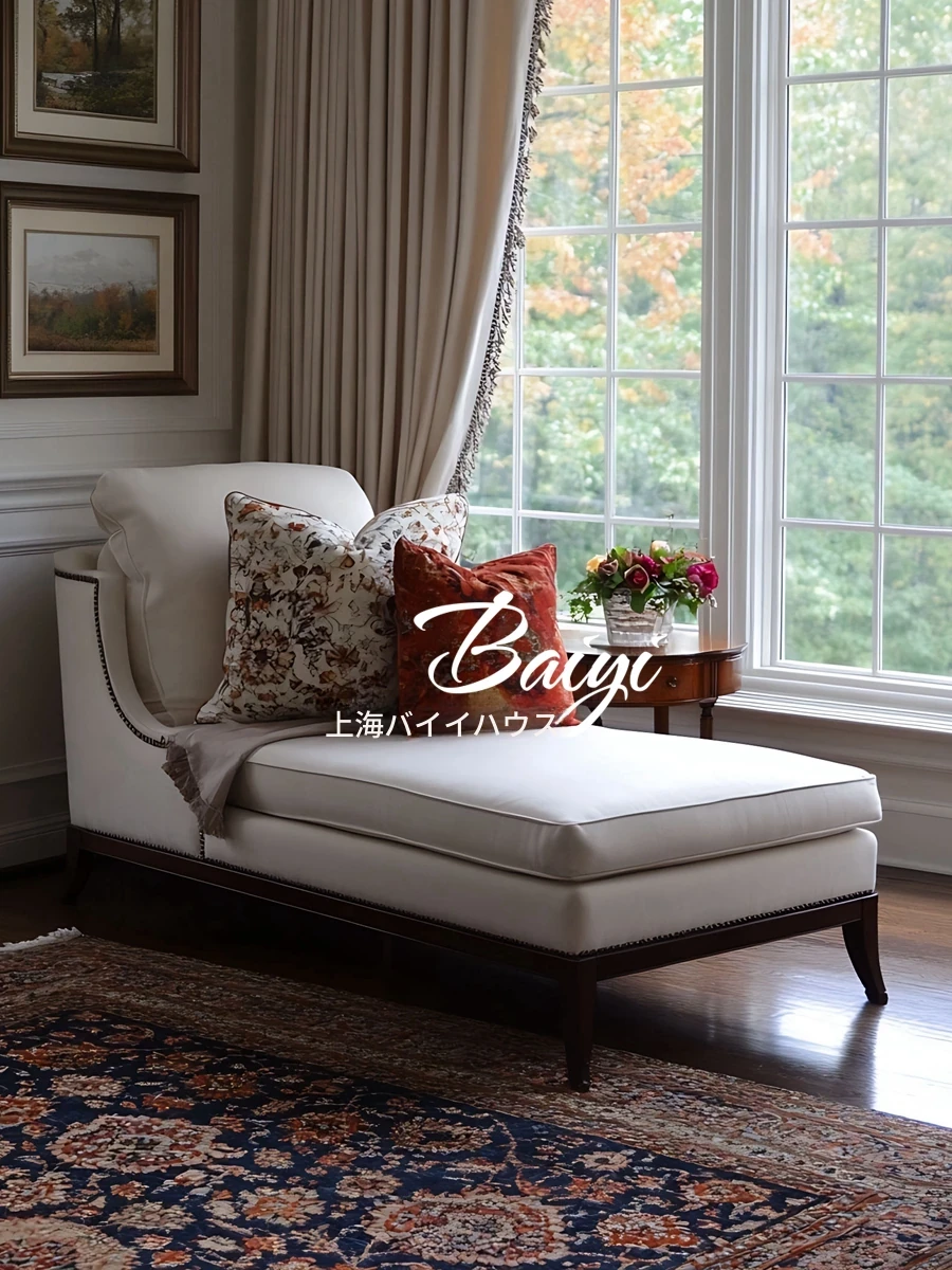 アメリカンカントリー風の布製ロマンティックチェア - リビングやバルコニーにぴったりの優雅なデザイン!寝室にも最適な一人用ソファ・美人の寝台としても使える貴妃椅子。快適なリラックスタイムを手に入れましょう!