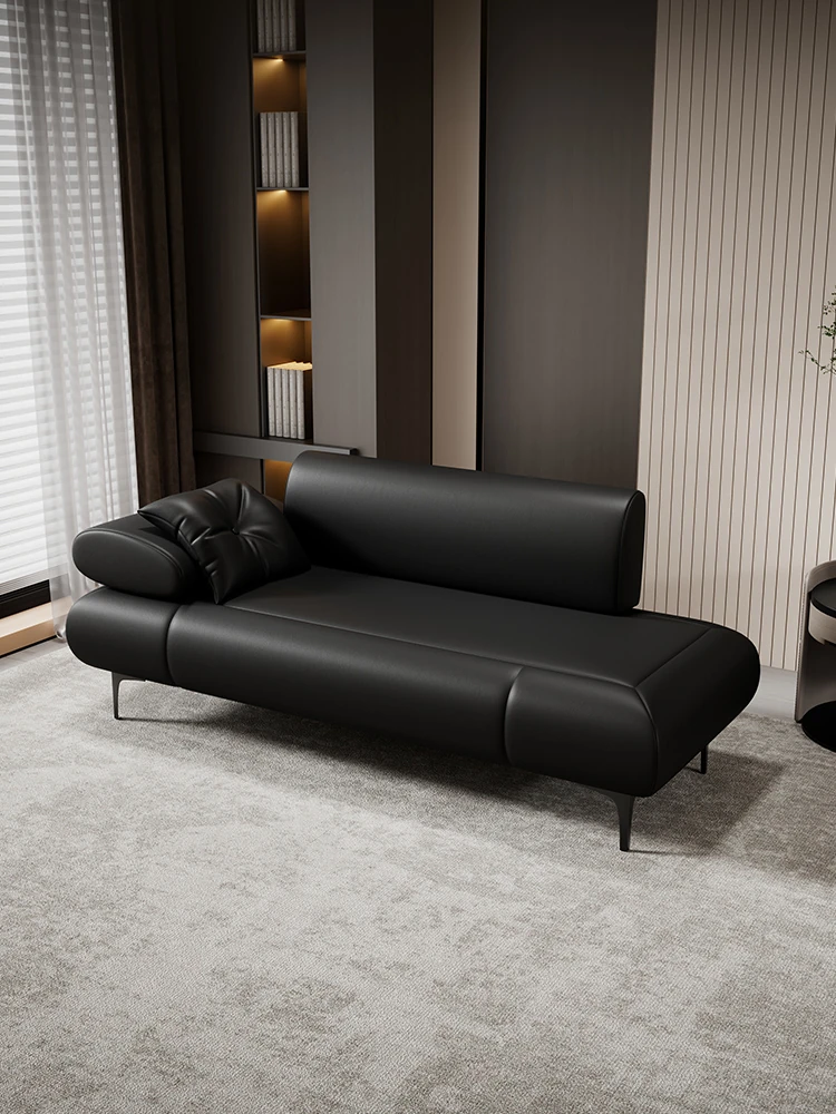 モダンミニマリストの貴妃椅子 - 寝室や小型リビングにぴったりな弧形デザインの本革ソファベッド。スタイリッシュで快適、あなたの空間をワンランクアップ!
