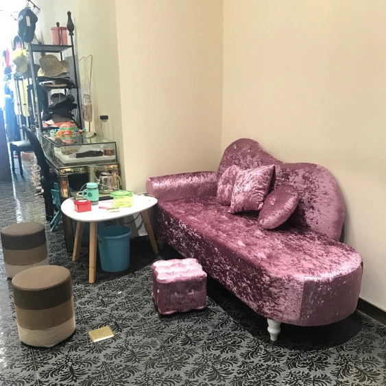 エレガントなヨーロピアンスタイルの片肘ソファ、コンパクトなデザインで小さなお部屋にもぴったり!リラックスできる布製の美人ソファ、寝室や店舗に最適なアイテムです。