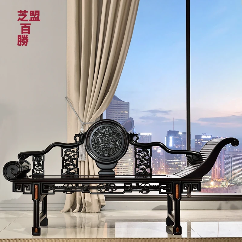 艺盟百胜の紫光檀中式貴妃榻 - エレガントなデザインと快適さを兼ね備えた一人用ベッド。東アフリカ産の黒黄檀使用で、贅沢なひとときを提供します。あなたの寝室を格上げするアイテムです!