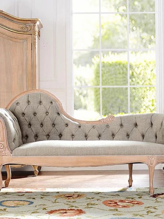 アメリカンカントリー風の無垢材使用!リビングにぴったりな布製美人ソファ、寝室にも最適な欧州スタイルの軽奢華彫刻付きロマンティックなデイベッド。贅沢なひとときをお楽しみください!