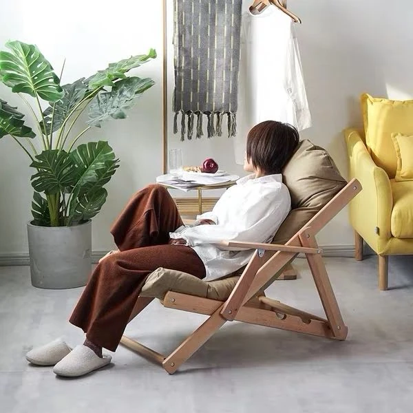 北欧スタイル折りたたみ木製リクライニングチェア - リラックスできる妊婦向け、バルコニーやお昼寝に最適なブナ材使用の懶人ソファ!