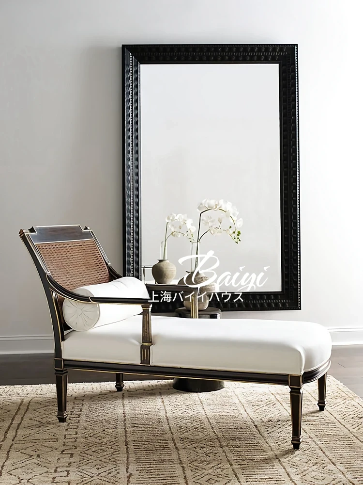 フレンチビンテージの無垢材製カウチソファ、アメリカンシンプルなライトラグジュアリー、ラタン彫刻の美しい一人用リラックスチェア。洗練されたデザインで、あなたのインテリアに優雅さをプラス!