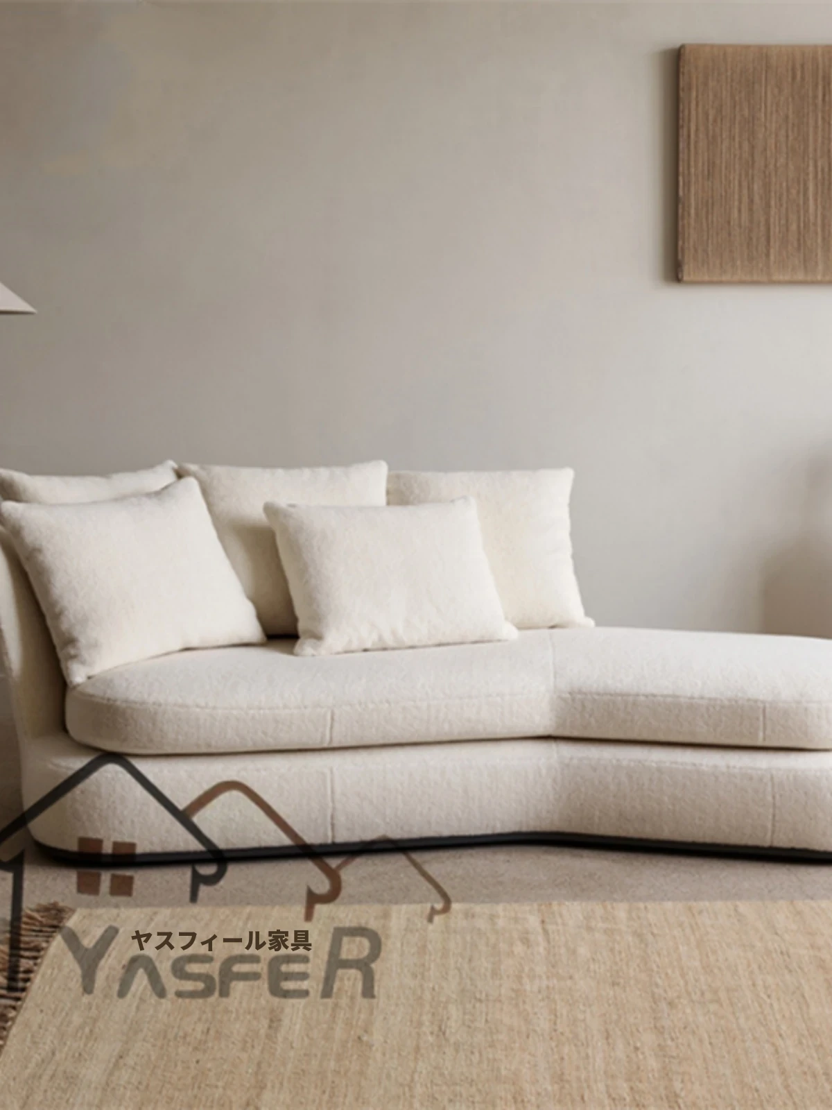 北欧風ミニマリストデザインの貴妃椅子|ラグジュアリーなイタリアンスタイル|ふわふわのラムウール生地を使用したアーチ型ソファ|リラックスできる完璧な一人用チェアです!