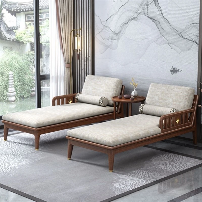 新中式無垢材製の貴妃ソファチェア - リラックスできる一人用の寝椅子、寝室やリビング、バルコニーに最適!上質なデザインで、あなたの空間を格上げします。