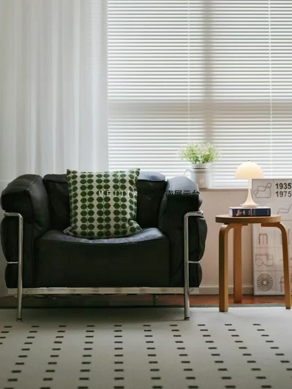 ステンレス製ブラックシングルソファチェア|クリーム風デザインの小型ダブルリラックスチェア|軽やかなラグジュアリー感溢れるリビング用|おしゃれで快適な一人掛け椅子